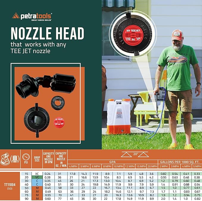 - PRO-KIT UPGRADE: Upgrade your HD4000 with our premium PetraJet TeeJet-style nozzle (110 fan pattern, .4 GPM) for precision spraying, a 20-ft hose for extended reach, and a heavy-duty spray pistol with adjustable spray patterns. Includes durable sprayer gloves for added protection.