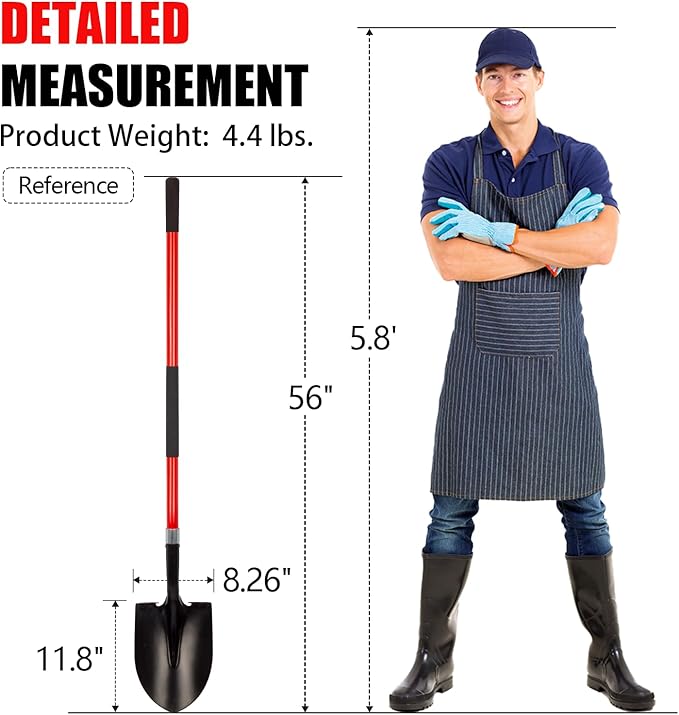 - Dimension: The 56 inches shovel for digging is suitable for adults, the right size can reduce the pressure on the waist, and long-time users will not feel tired.
