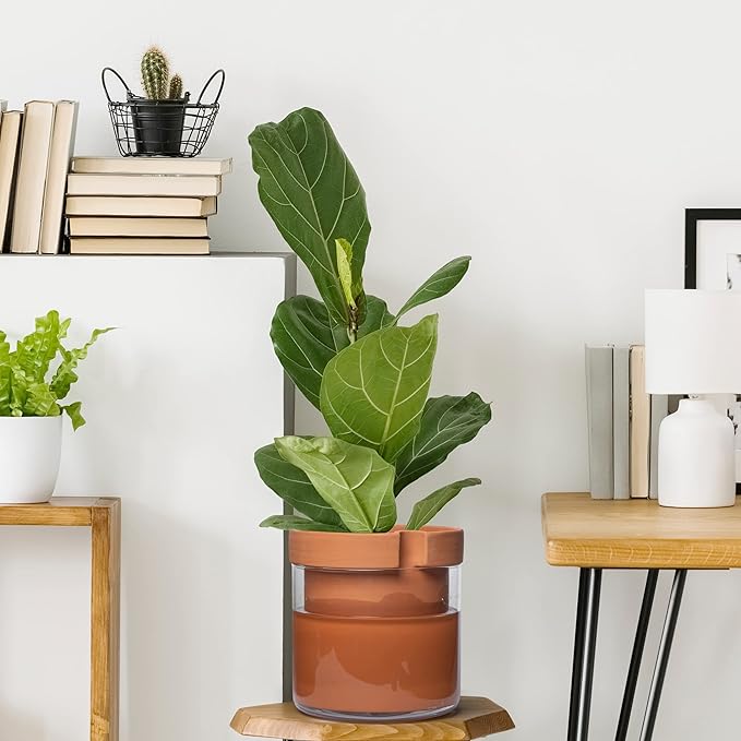 - Self-Watering System: The bottom quarter of the terracotta pot is unglazed, allowing plants to absorb water through the pot walls.