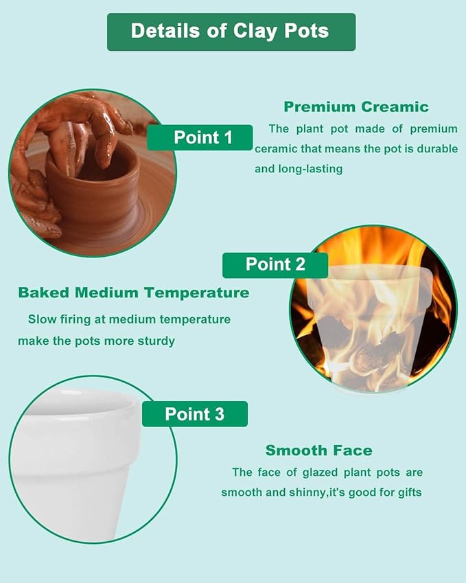 - 【Multi-usages】The cute ceramic pots are perfect for plants nursing, ornament for room or balcony, wedding, baby shower, and other party decoration, crafts creation and more. Suitable for school projects of teaching children about growing plants.