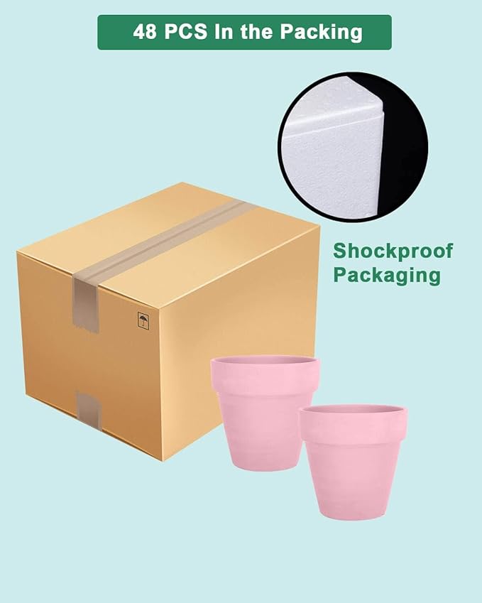 vensovo 48 Pcs 2" Tiny Terracotta & Terra Cotta Pots with Drainage - Peach Pink Small Mini Clay Ceramic Pottery Planter Ideal for Indoor/Outdoor Plants, Crafts, Wedding Favors