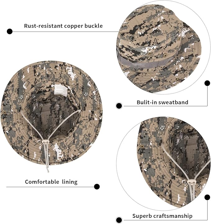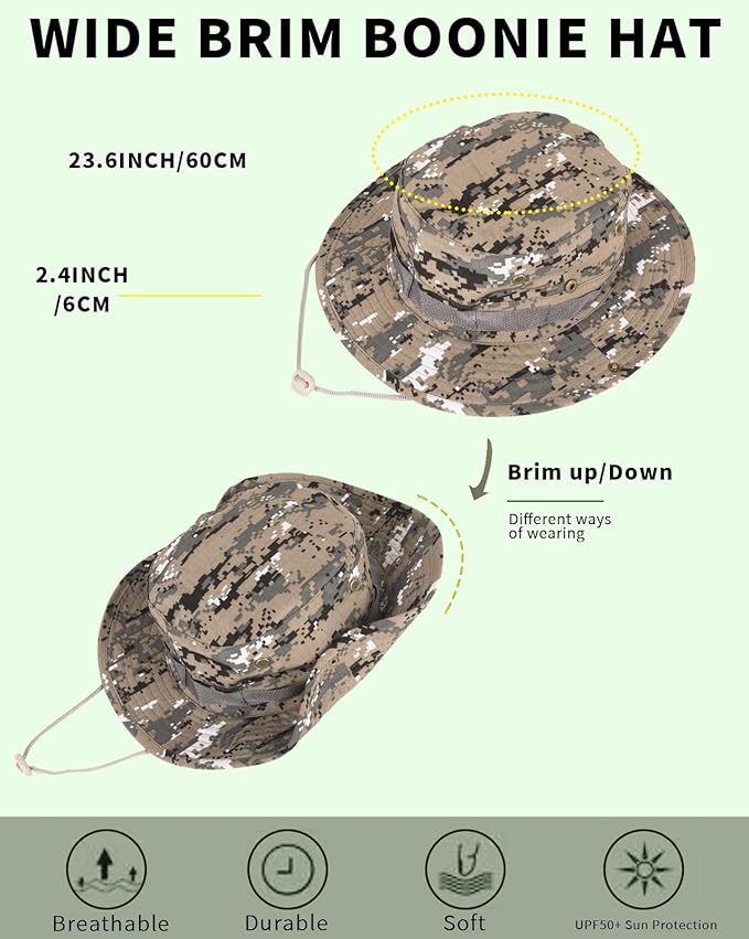 - GOOD DESIGN WIDE BRIM HAT:The well-designed summer outdoor hat has two ways to use it. Both sides are equipped with rust-proof buttons. When the brim is rolled up, it is a cowboy hat. Loosen it, will be a fashionable sun-proof fisherman hat/safari hats for men and women.