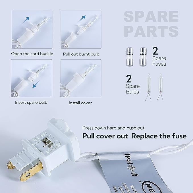 - ⛄Unique Design incandescent mini Lights: The bulb has a snap-on design and is very easy to replace. When one of our bulbs breaks, it doesn't affect the other bulbs. This is a very special design. You can replace damaged bulbs individually with the spare bulb or fuse provided by us.