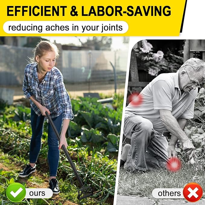 - Adjustable Long Handle: Crafted from premium heavy duty steel, this hoe garden tool long handle is ergonomically designed to reduce the pain in joint caused by the bending of your back when doing yard work.
