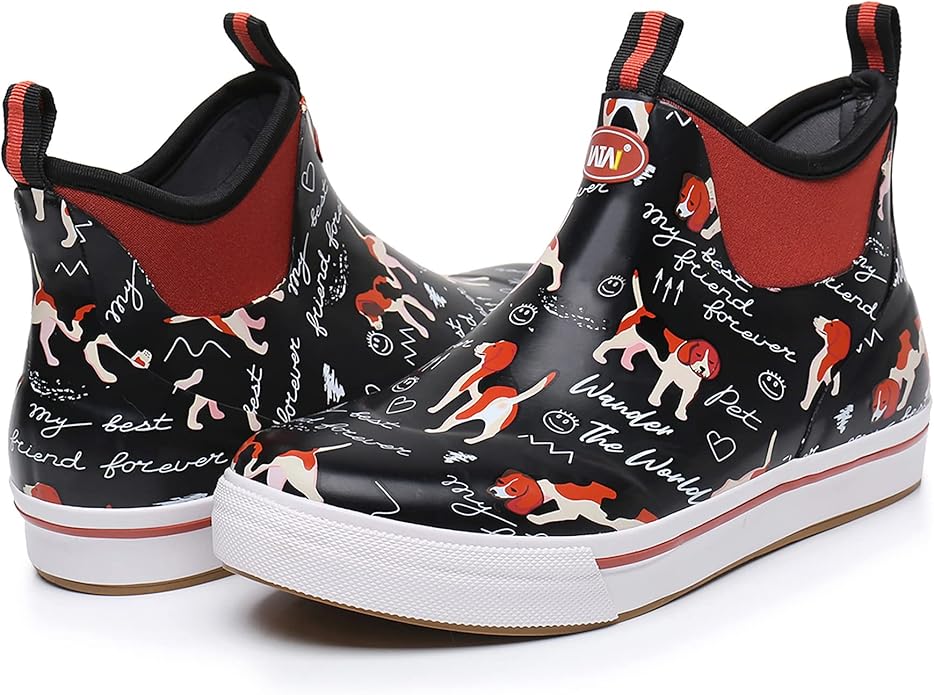 WTW Unisex Rain Boots for Men and Women Waterproof Rubber Fishing Deck Boots Neoprene Boots Slip on Ankle Garden Shoes