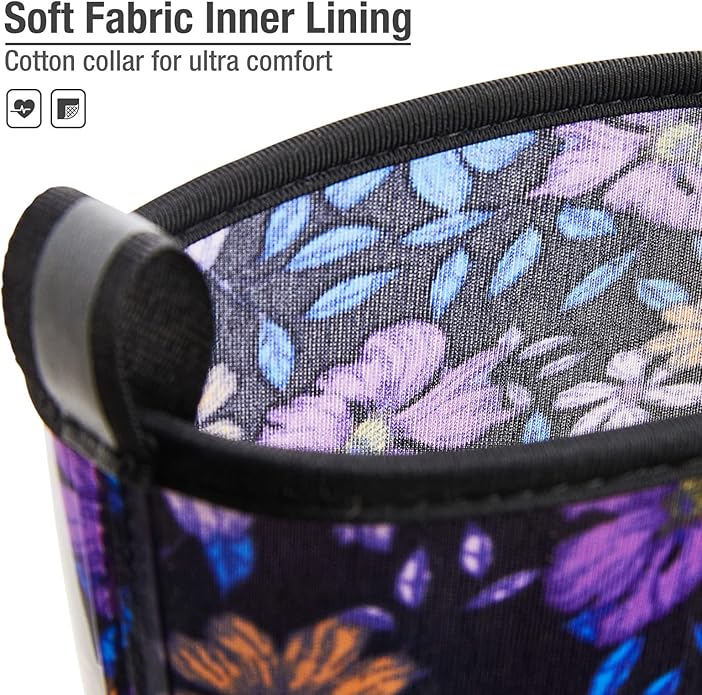 - These women’s rain boots feature a soft and flexible PVC materials upper and round-toe silhouette. The soft and quick-dry textile lining absorbs moisture, so you will stay dry, cozy, and warm in the backyard garden.