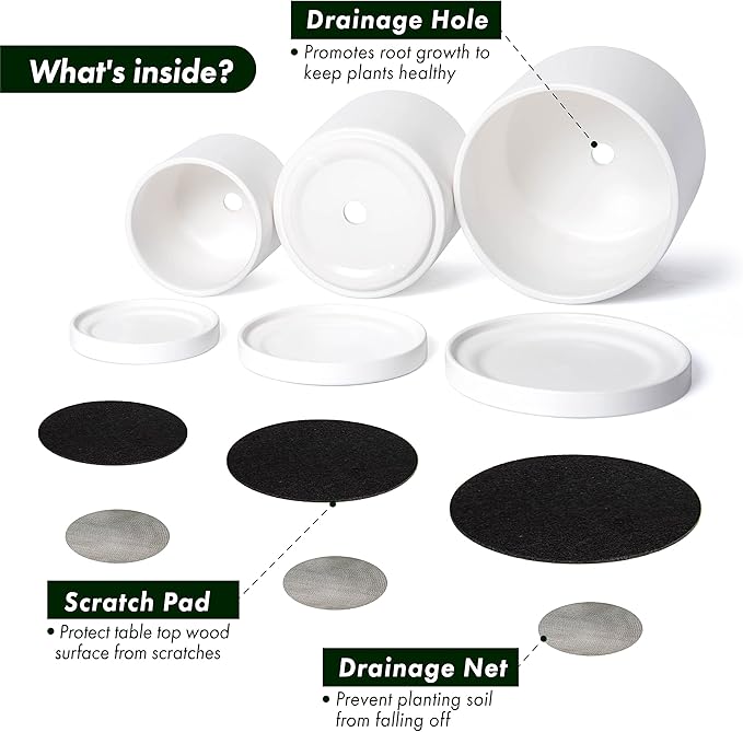 - Hassle-Free replacement or refund if any damage or issues with the package or planter pot and saucers. Quick and satisfying resolution.