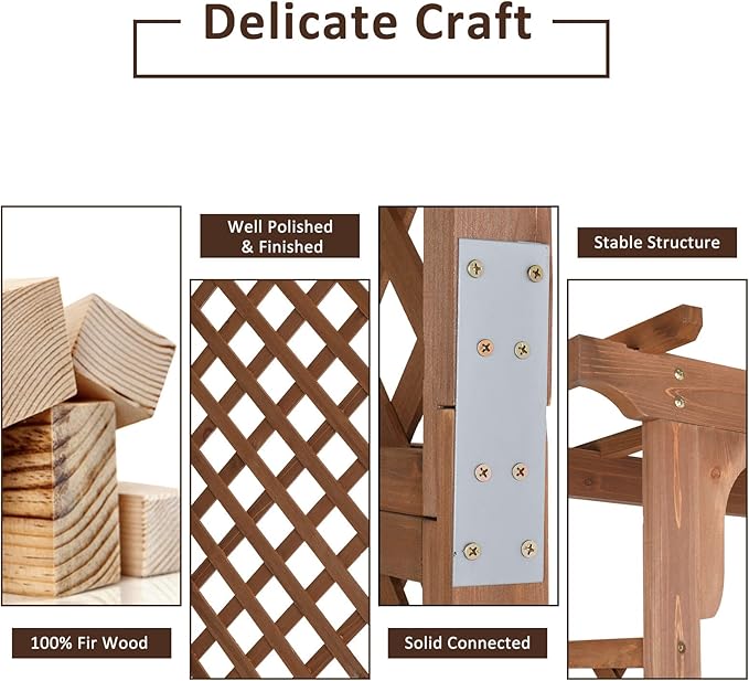 - Solid Material -This Arbor is made by solid wood. It's sturdy and solid for long time and durable usage.Moisture Resistant,Maintain beauty and performance.