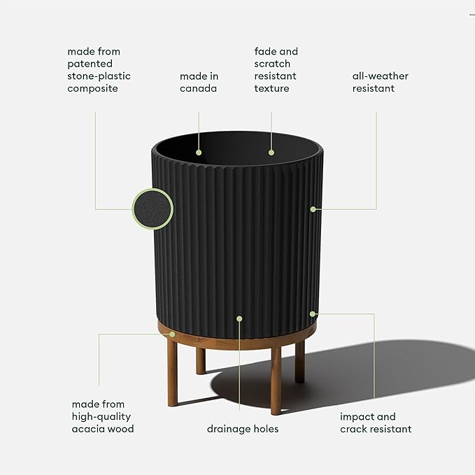 - WOODEN STAND: The Raised Demi planter includes an acacia wood stand that comes in two colors; the perfect addition to created an elevated look.