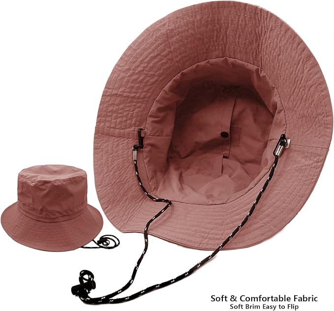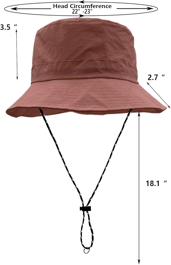 - One Size Fits Most: This bucket sun hat circumference is 21- 23 inches, it fits both men and women. It has adjustable elastic buckle string at the back, you can easily adjust it for your comfort. And you can also adjust the removable chin strap under this sun shade hat to keep it firmly in place on windy days.