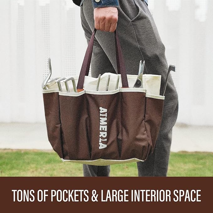 Gardening Tools Set of 9 Heavy Duty Garden Tools with Non-Slip Rubber Grip with Large Garden Bag for Tools Durable Hand Tools for Gardening, Weeding,Gardening Gifts for Women,Men