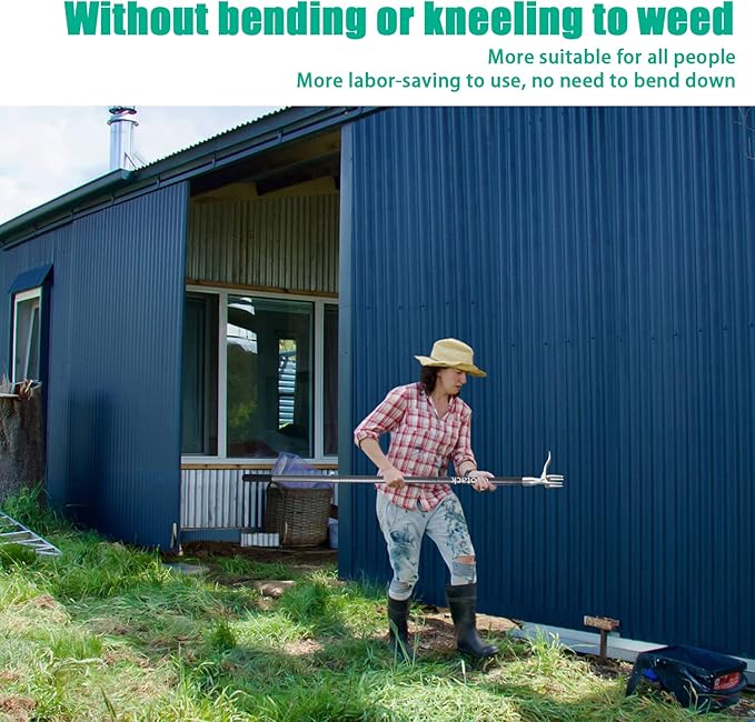 - Weeding by standing to Save your back: 52" stand-up weeding remover tool with a long pole, that saves your back & knees. Effortlessly weed puller from your garden without bending or kneeling, eliminating sore knees and stooping pains. It really is a practical weeding tool for grandpa, grandma, father, husband, or whatever you need, making weeding a breeze.