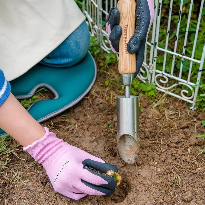 Berry&Bird Bulb Planter Tool, 12" Garden Bulb Transplanter Tool, Stainless Steel Manual Hole Digger with Wooden Handle, Transplanting Agricultural Dibble Tool for Seed Planting & Flower Planter