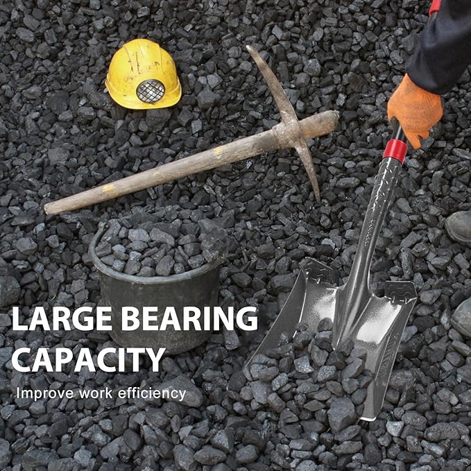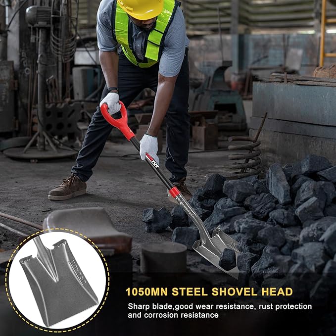 - MATERIAL - The head of the square shovel is made of 1050MN steel,the handle is made of fiberglass and the hand grip is made of PP.