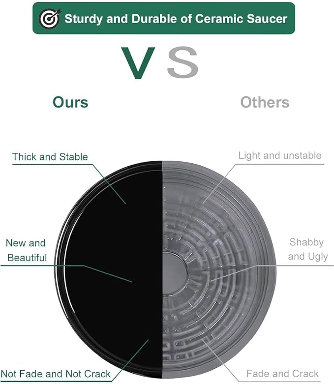 - 【Sturdy and Durable】The small round plant saucer are made of good quality ceramics and fired at 1800℉ to make them sturdy and undeformed for a long time. Glazed ceramic plant trays are durable and will not fade or crack over time, and will remain new after long time use.