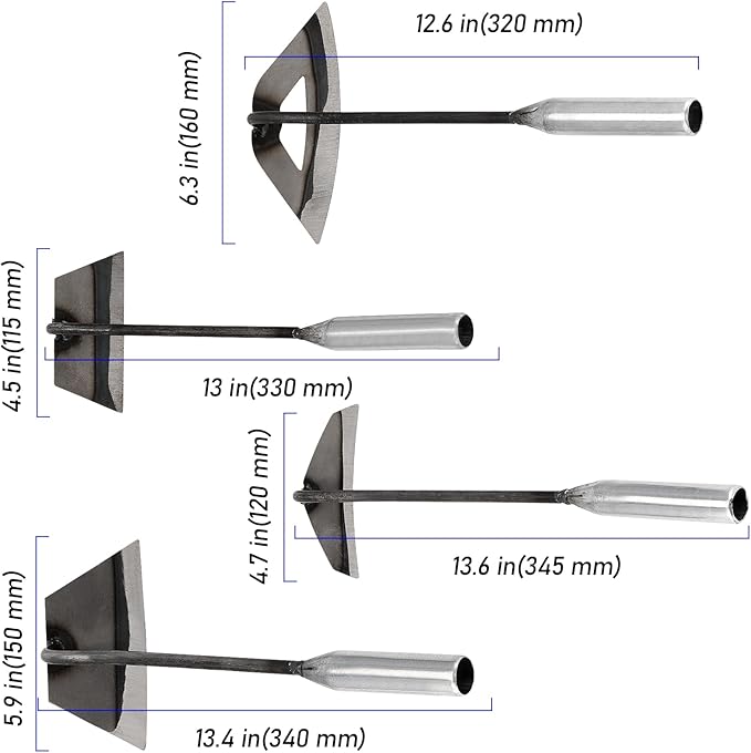 - STURDY CONSTRUCTION - All the hand hoes in this set are made of hardened cast iron, ensuring they are durable and long-lasting. They are one piece, firmly welded, and there is no concern about the head coming off the handle.