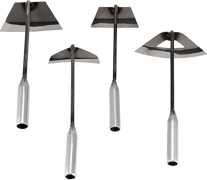 4 PCS Garden Hoe Tool Set, Hardened Hollow Hoe Garden Edger Weeder, Sharp Handheld Hoe for Weeding, Loosening Soil, Planting