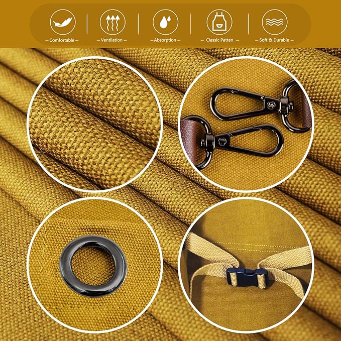- Expert Craftsmanship: This apron is made of 12-ounce cotton canvas, metal grommets, rivets, and leather. The pockets are reinforced with metal rivets at the corners, with double stitching and bottom folding edges to increase strength and durability