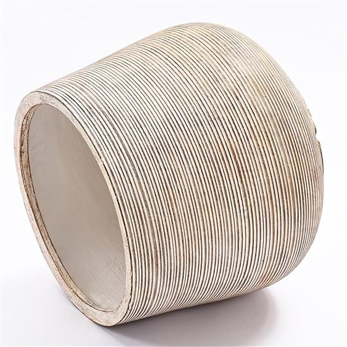 - Stylish Distressed Planters: The round planters for outdoor plants is perfect for showing off your green plants and colorful flowers. Its distressed finish reveals a mixture of tan, white, and gray accents further highlighted by the ribbed design.