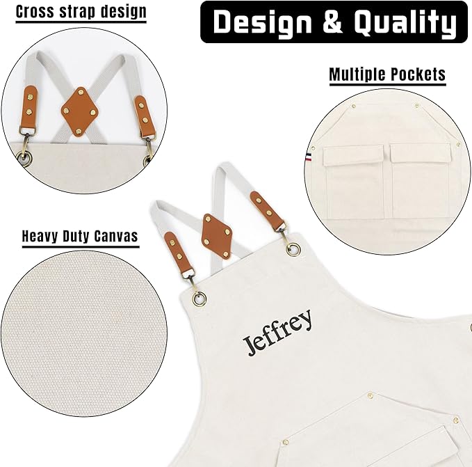 Personalized Chef Aprons for Men Women Canvas Cross Back Heavy Duty Work Apron for Coffee Shop Bartender Bistro Woodworking