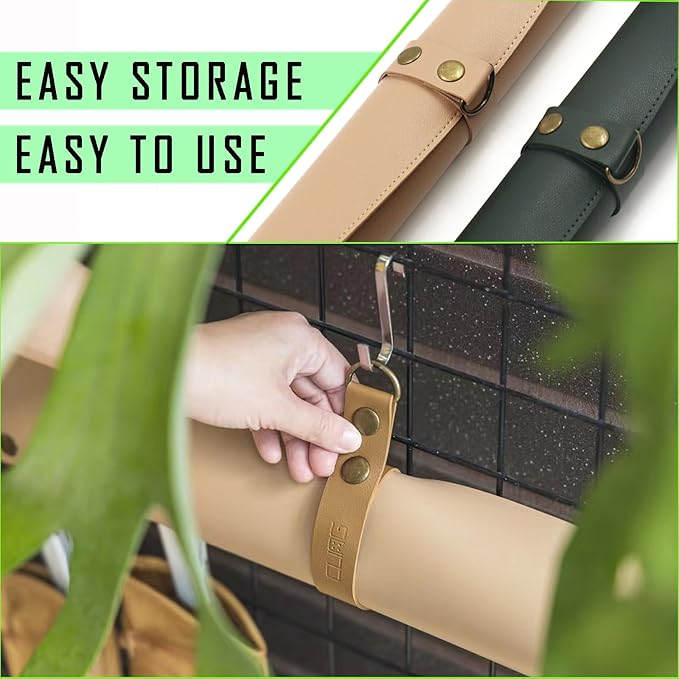 - 【Perfect Design】The copper buttons on the four corners are very useful, which can prevent water and dust from spilling, and avoid soiling the floor or table. With this leather mat, mess control is easy! There will no longer be any delay in plant care due to the chaos on the kitchen counter and floor! The Plant Mat is designed with a storage strap to make storage very convenient.