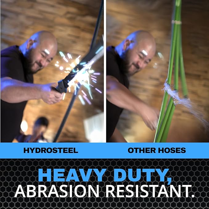- THE LAST GARDEN HOSE YOU WILL BUY: The Hydrosteel, 3-layer, heavy duty garden hose is constructed with a rubber inner tube, wrapped in a commercial-grade, 304 stainless steel serpent tube, and then encased in a polyester weave to create an ultra-durable, rust proof, leak and puncture resistant, weatherproof water hose tough enough to even withstand being placed in a fire.