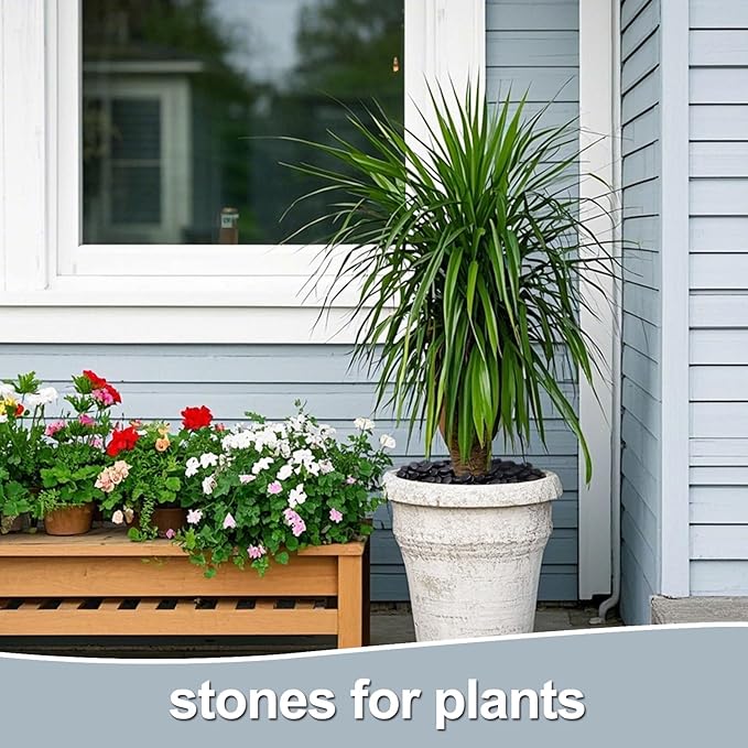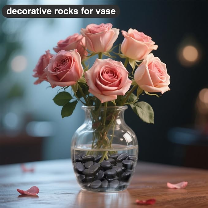 - 【Multiple Uses】This black pebbles are naturally harvested, highly polished, and waxed by an advanced process. They are suitable for indoor or outdoor use, such as potted plants, succulents, cacti, bamboo, vase fillers, terrariums, garden, landscapes.