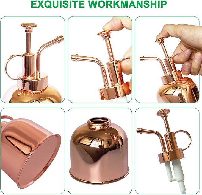 - [High quality material] The pot of metal plant sprayer is made of high quality stainless steel, the nozzle is made of metal zinc alloy, the spray pump is made of white plastic, the appearance is colored by electroplating, the product is leak-proof, rust-proof, scratch-proof, corrosion-proof and long-lasting without fading.