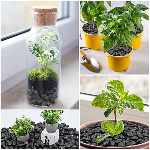 - MULTIPLE USES: It is most commonly to use our black polished pebbles as a decorative addition to ay size potted plants, aquarium, vases, terrariums, bonsai, succulent planter, candle holder etc and our rocks are popular in weddings, floral arrangement and seasonal decorations. Rocks will give the arrangement a natural,earthy feel. Natural river rock are perfect for outdoor landscaping, add beauty to your garden, patio, fountain, walkways, turn your backyard into a beautiful resort look.