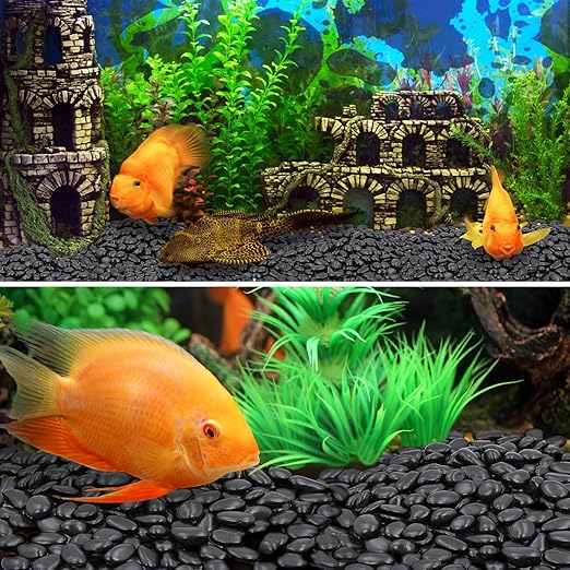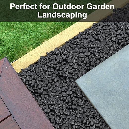 - NATURAL RIVER ROCKS: Lechloris provide you with durable, high quality, non-toxic and eco-friendly rocks from natural. Pebbles are high polished to produce the most consistent in color, without blemished to last years and resists fading for long-lasting beauty. Use our black rocks as a cost-effective substitute to mulch along outdoor landscape design,their natural propertis will make them last longer.