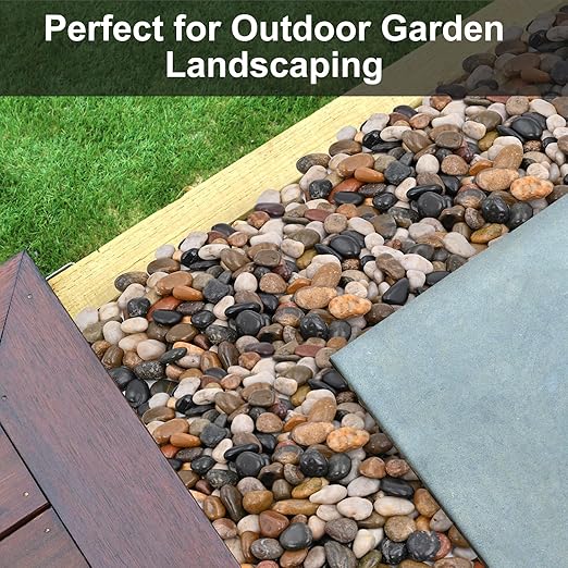 - NATURAL RIVER ROCKS: Lechloris provide you with durable, high quality, non-toxic and eco-friendly rocks from natural. Pebbles are high polished to produce the most consistent in color, without blemished to last years and resists fading for long-lasting beauty. Use our rocks as a cost-effective substitute to mulch along outdoor landscape design,their natural propertis will make them last longer.