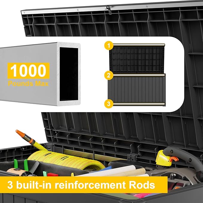 - ADAPTABLE TO VARIOUS SCENES: Whether used as an indoor laundry storage chest or an outdoor deck box container for items like outdoor cushions, garden tools and pool accessories, this patio storage box provides abundant space.