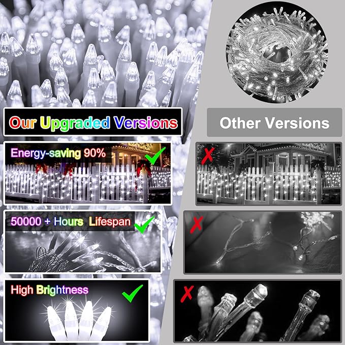 - Safer and Energy-efficient: Our LED Christmas lights offer a safe lighting solution for your holiday decor, especially when it comes to their soft and gentle glow. And with 29v low voltage design and advanced safety features, they provide peace of mind for families with children and pets. Designed with energy-saving LED bulbs, our LED lights consume less electricity, helping you save money on your energy bills while still enjoying brilliant illumination.