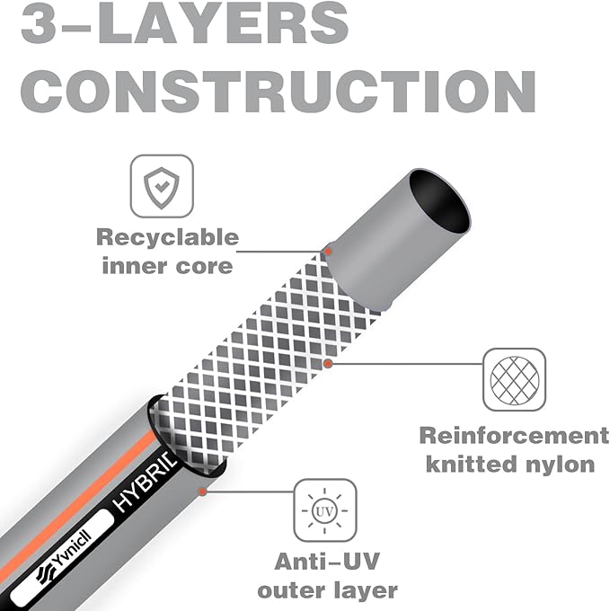 - No Kinking and No Leak : Our kink free hose is extra thickened 40% and a three-layer design, kink-free and leak-proof,more pressure resistant than other rubber water hoses.There is still no tangles after you close water,it's easy to hang and store.