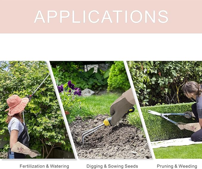 - 【Long Gardening Gloves】These extended-length gloves shield your forearms and hands from scratches, insect bites, and harmful UV rays. Made with breathable, moderately thick material, they offer reliable protection without causing overheating or discomfort during extended wear.
