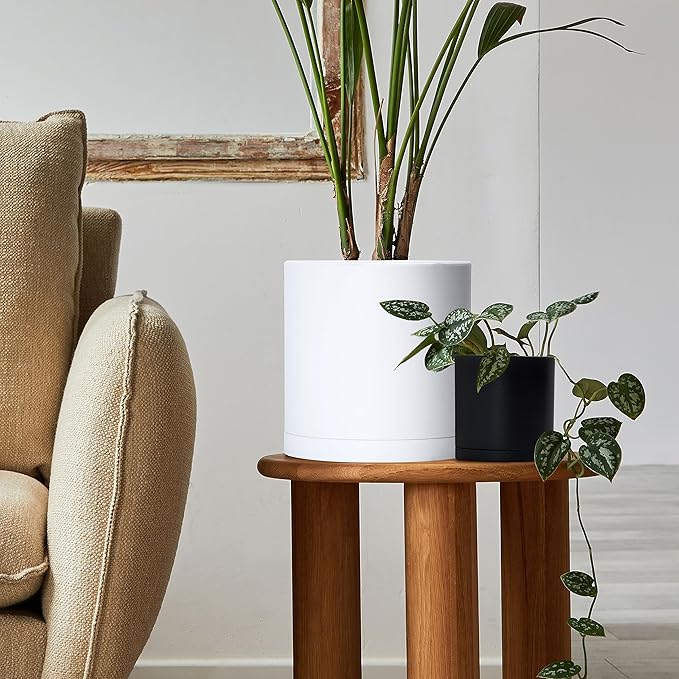 - Seamless & Minimalist Design: Modern straight cylinder shaped planter pots with drainage hole and seamless detachable saucer.