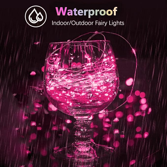 - Waterproof String Lights for Outdoor Use: These pink lights are designed with an IP44 waterproof rating, which is rainproof and allows them to illuminate well on rainy days outdoors, making them ideal decorative string lights for both indoors and outdoors. Note: The battery case is not waterproof; please keep it away from water.