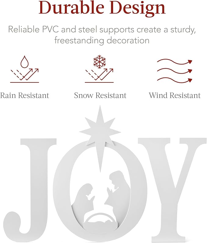 Best Choice Products 46in Outdoor JOY Christmas Nativity Decoration, 3 Piece Yard Decor Sign Holy Weather Resistant PVC Silhouette for Garden - White