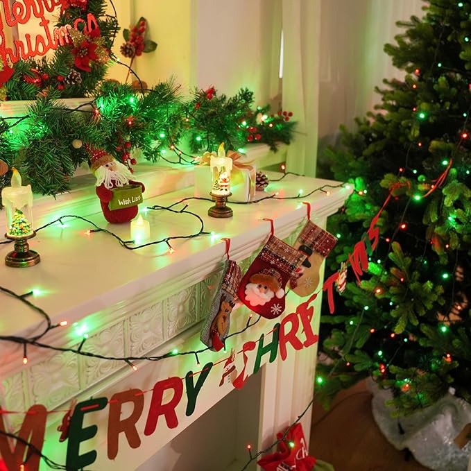 - Super Long Expandable Christmas Lights: Our Christmas lights is 2 pack total long 164ft 400 LED red and green individual bulbs. Each string totals 75.8FT in length, with 9.8FT as the leading wire and 66FT dedicated to the LED lights, able to give off warm bright lights to add to your christmas atmosphere. Designed with end-to-end connectors, each string light comes with male and female plugs for safe linking. Connect up to 5 sets together to expand lighting coverage.