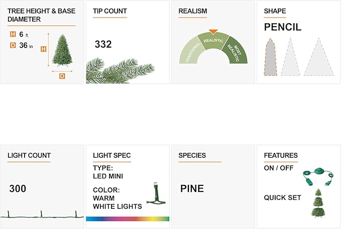 - đăHOLIDAY ACCENTă: Quick and easy way to increase the beauty in your home with this 6ft Flocked Pencil Pine christmas tree, which is a great alternative to a yearly real decoration purchase.This tree can be kept either in your living room around the fireplace or in your front yard,to create fragrant Christmas atmosphere.