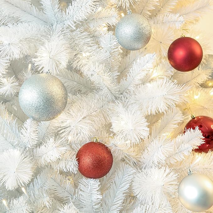 - đăHOLIDAY ACCENTă: Celebrate the holidays with this 8ft white artificial Christmas tree - a great alternative to traditional green trees! Its stand is crafted from metal and features lush white PVC branches so it never has to be watered. Its natural look let it great in traditional and modern homes, and its flexible branches are easy to shape. This tree can be kept either in your living room around the fireplace or in your front yard,to create fragrant Christmas atmosphere.