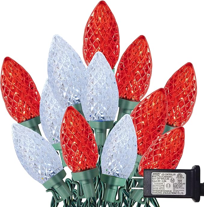 - 8 MODES WITH TIMER: This C9 Christmas string lights offer 8 distinctive lighting modes, including a combination, wave, sequential, slow glow, chasing/flash, slow fade, twinkle/flash, and steady on.(NOTE:Long-time press the button on the adapter, when shows green lights, timer works.)