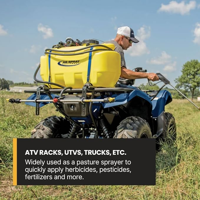 - MOUNT WITH EASE: Fits securely on most ATVs and utility racks. Great for mobile use across parks, homesteads, or acreages needing flexible and consistent spray power