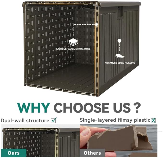 - DOUBLE-WALL CONSTRUCTION:Unique dual wall structure raises sturdiness & durability to the next level; All-weather guard resin pairs with wooden texture to imbue a natural touch for lasting outdoor use