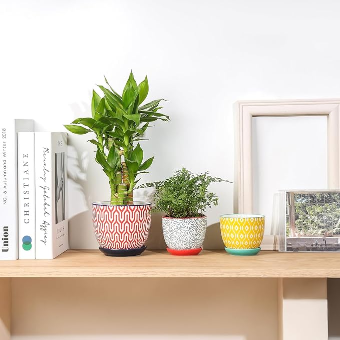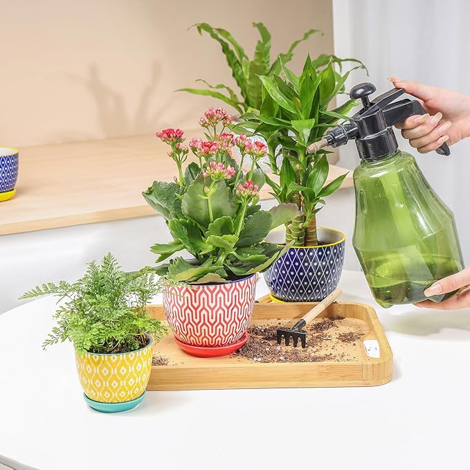- 【STURDY QUALITY & PACKAGE】These 3.5" plant pots with the gorgeous appearance are made from sturdy ceramic, nontoxic. The complete smooth texture inner & outside makes them clean easily. Each flower pots with saucers are wrapped with thick foam to avoid damage to the flowerpot during transportation.