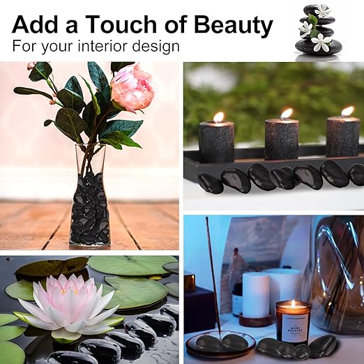 - MULTIPLE USES: It is most commonly to use black polished rocks as a decorative addition to landscaping design, add beauty to your garden, patio, fountain, walkways or flower bed, turn your backyard into a beautiful resort look. Also our decorative rocks are ideal for planters, vases, aquariums, candles etc and rocks are popular in weddings, floral arrangement and seasonal decorations. It is also a great gift for mom,dad or grandparents to decorate their garden in the upcoming spring and summer.