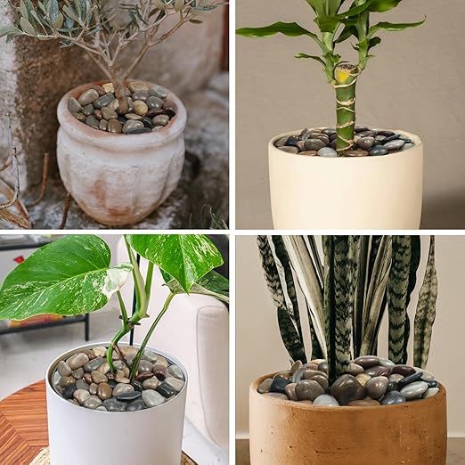 - COLOR AND SIZE: The length of our slight polished mixed river rock stone is about 1 to 2 inches, the large size and the beautiful bright mixed color makes these stones ideal for use indoor and outdoor for a unique decorative assent. If you use the large black rocks to decorate potted plants, our black pebbles with perfectly polished accent will make your plants really stand out. These rain forest rocks will add extra upscale touch to your interior designs or outdoor garden landscaping projects.