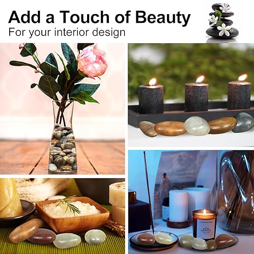 - MULTIPLE USES: It is most commonly to use mixed polished rocks as a decorative addition to landscaping design, add beauty to your garden, patio, fountain, walkways or flower bed, turn your backyard into a beautiful resort look. Also our decorative rocks are ideal for planters, vases, aquariums, candles etc and rocks are popular in weddings, floral arrangement and seasonal decorations. It is also a great gift for mom,dad or grandparents to decorate their garden in the upcoming spring and summer.