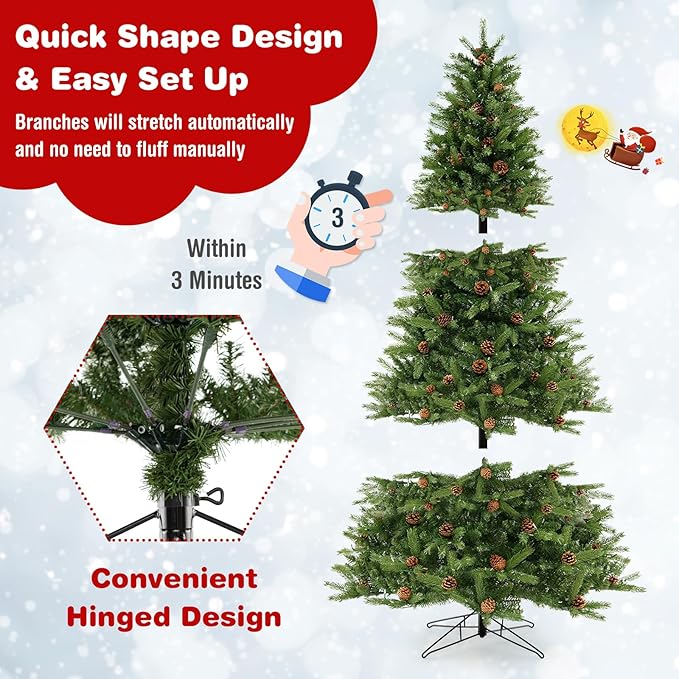 - Realistic Christmas Decoration: Experience a real festive feeling with the lifelike Christmas tree branches decorated by dense and realistic 944 tips and 74 pine cones. Furthermore, crafted from non-toxic and fire-resistant PVC & PE materials, the Christmas tree is perfect for indoor decoration. Please notice that decorations are not included in this product.