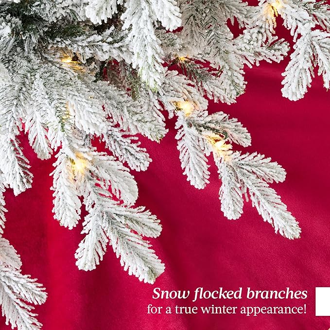 - FLOCKED ARTIFICIAL NOBLE FIR: Bring the beauty of a winter wonderland indoors with snow-touched, realistic-style branches that bring a touch of luxury to your holiday decor; Number of tips (4.5ft/6ft/7.5ft/9ft/12ft): 750/1,350/2,136/3,088/5,748